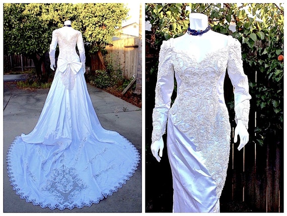 Vintage Wedding White Dress Gown Veil Cathedral Long Train Etsy Extra Long Cathedral Train Wedding Dresses