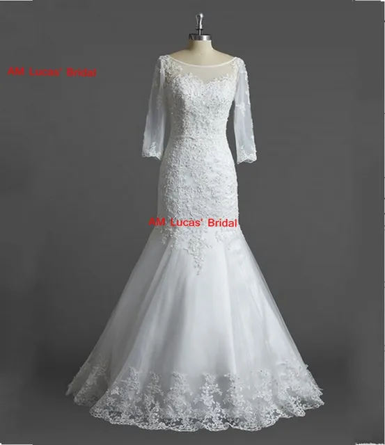 Long Mermaid Wedding Dresses With Sleeve Appliques Sweep Train Fairytale Mermaid Wedding Dresses With Long Train