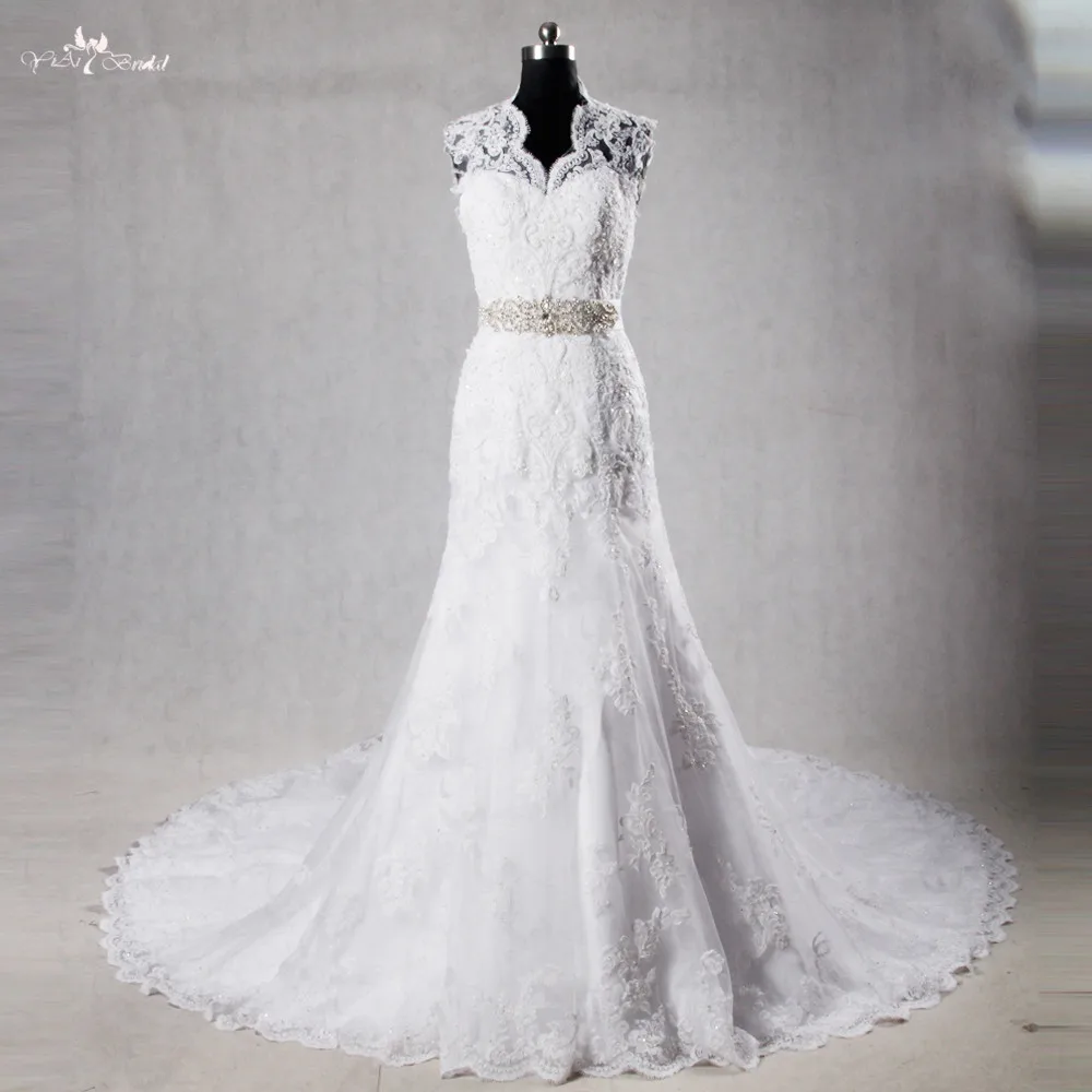 Discount Plus Size Mermaid Wedding Dresses Illusion Jewel Neck Fake Buttons On Wedding Dress
