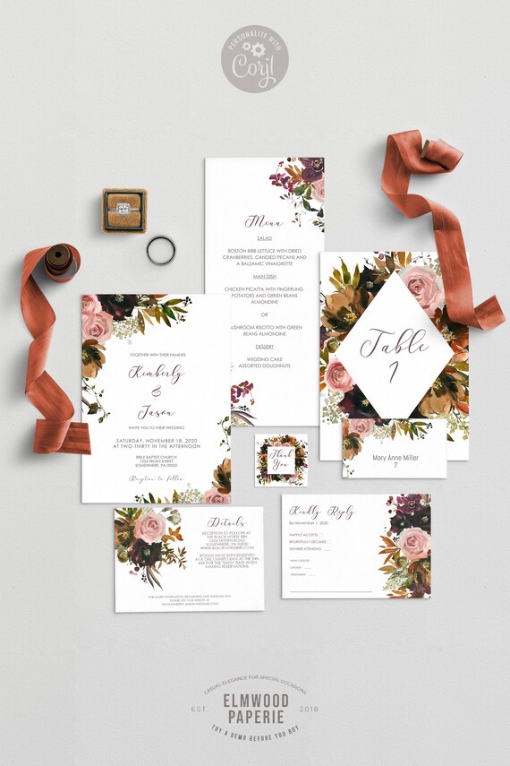 Autumn Wedding Invitation Set Template Fall Wedding Invitations Fall Wedding Invitations