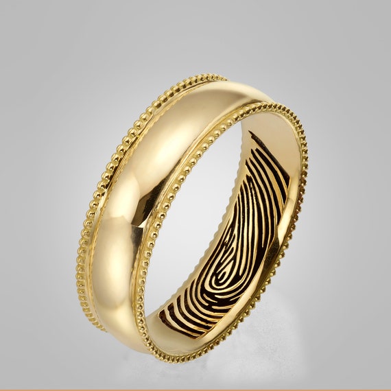 Fingerprint Wedding Band Gold Fingerprint Ring Fingerprint Etsy Fingerprint Wedding Ring