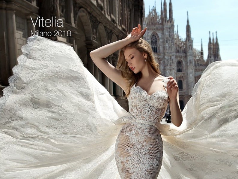 Mermaid Wedding Dress Bria V Neck Wedding Dress Long Sleeve Fitted Lace Wedding Dress Open Back