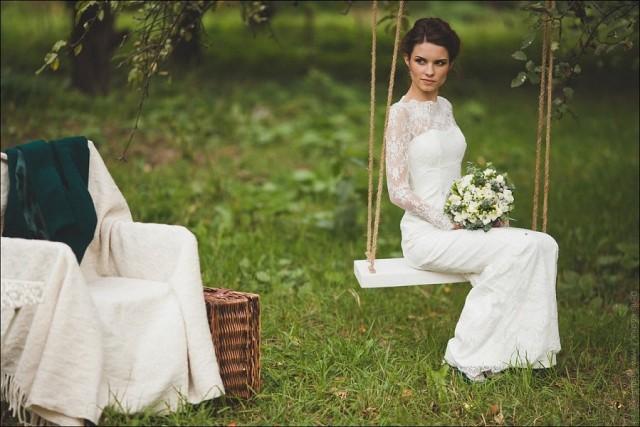 Fitted Style Lace Long Wedding Dress With Lase Sleeves L38 Ivory Fitted Long Sleeve Wedding Dress Lace