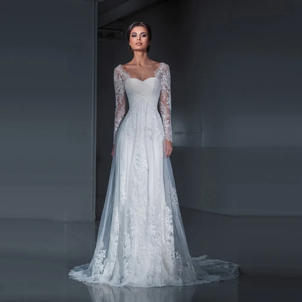 See Through V Neck Lace Rustic Wedding Dresses Long Sleeve Mermaid Fitted Wedding Dresses Long Sleeve