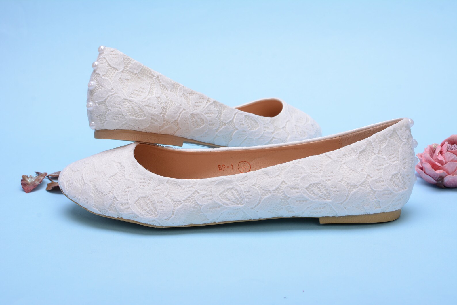 Spring New Womens Wedding Shoes Flat Bottom Low Heeled Pearl Flat White Wedding Shoes