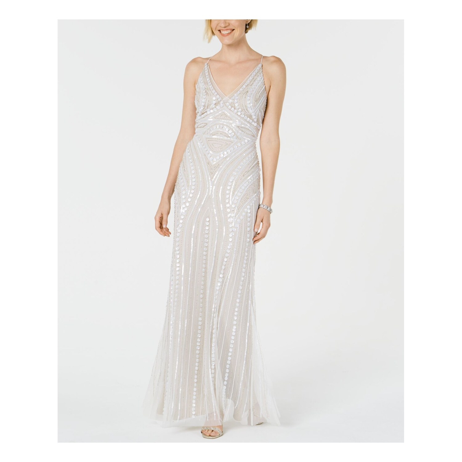 Shop Adrianna Papell Beige Spaghetti Strap Full Length Dress 6 Floor Length Dresses For Weddings