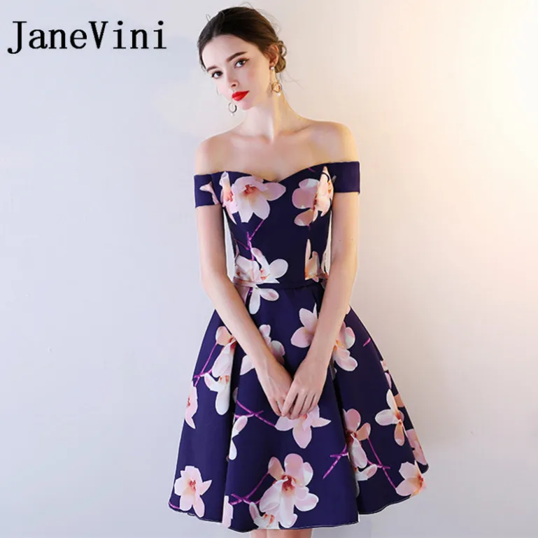 Janevini 2018 Short Bridesmaid Dresses For Weddings Floral Print Floral Dress For Wedding Guest