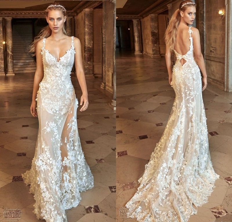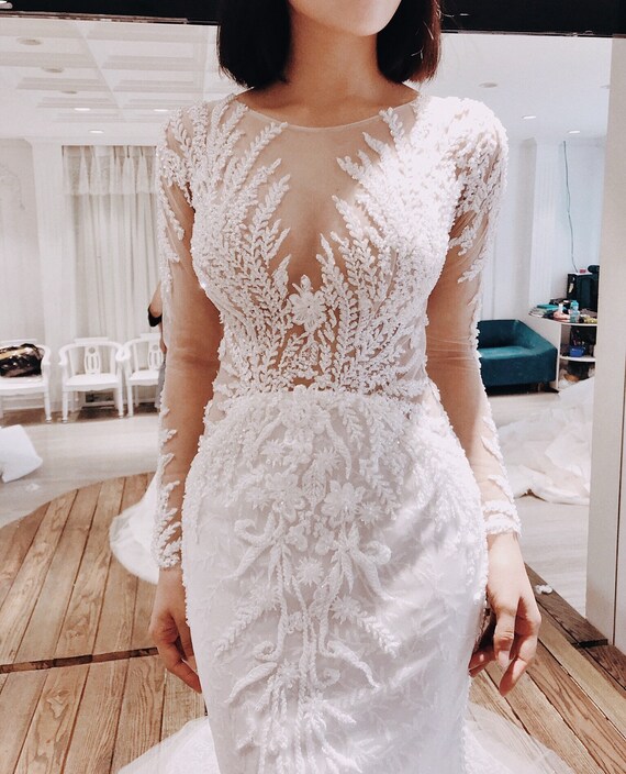 2017 Gorgeous Mermaid Wedding Dresses Sexy Sheer See Through Floral Lace Mermaid Wedding Dress