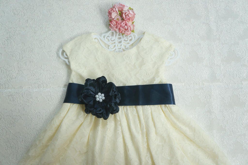 Ivory And Navy Blue Flower Girl Dress Lace Flower Girl Dress Etsy Flower Girl Dress Country Wedding