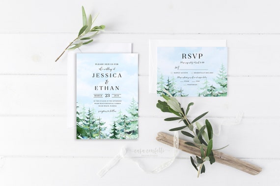 Forest Wedding Invitation Mountain Wedding Invitation Suite Woods Pine Tree Wedding Invitation Adventure Awaits Rustic Wedding Invitation By Casa Confetti Design Studio Catch My Party Forest Wedding Invitation