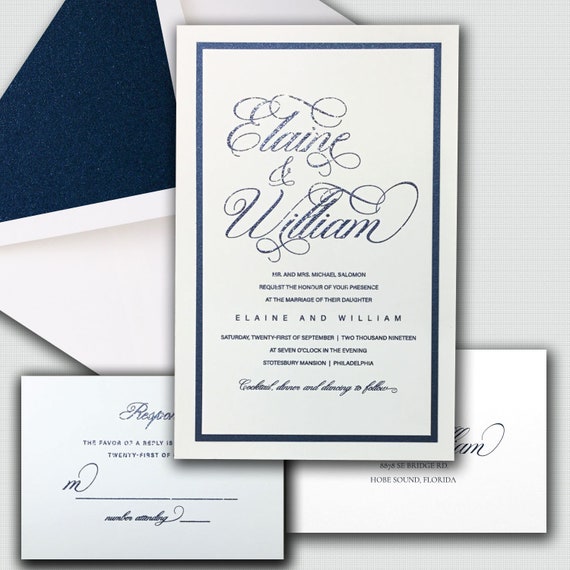 Karen Blue Wedding Invitations Sample Elegant Wedding Etsy Formal Wedding Invitation Examples