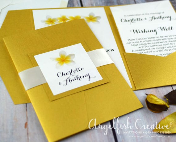 Tropical Pacific Island Beach Theme Wedding Invitations Frangipani Wedding Invitations