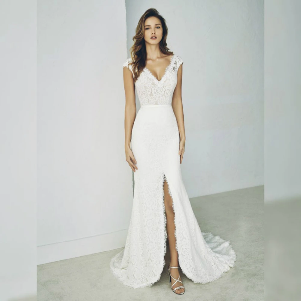 Trumpt Boho Wedding Dresses 2020 V Neck French Lace Wedding Gowns French Lace Wedding Dresses