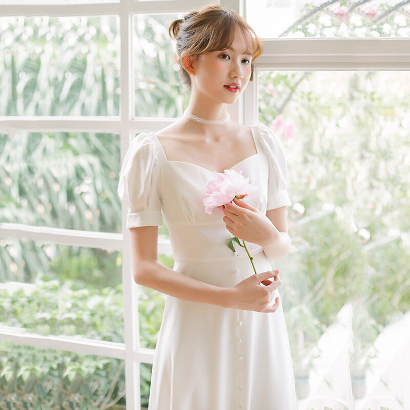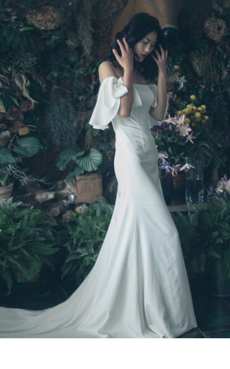 One Word Shoulder French Main Wedding Dress 2020 New Drag Tail French Wedding Dresses 2020