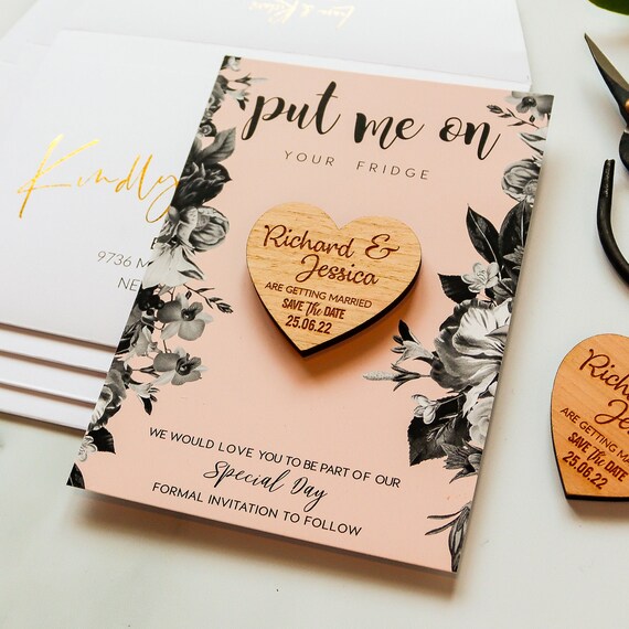 Simple Text Design Personalised Wooden Save The Date Magnet Fridge Magnet Wedding Invitations