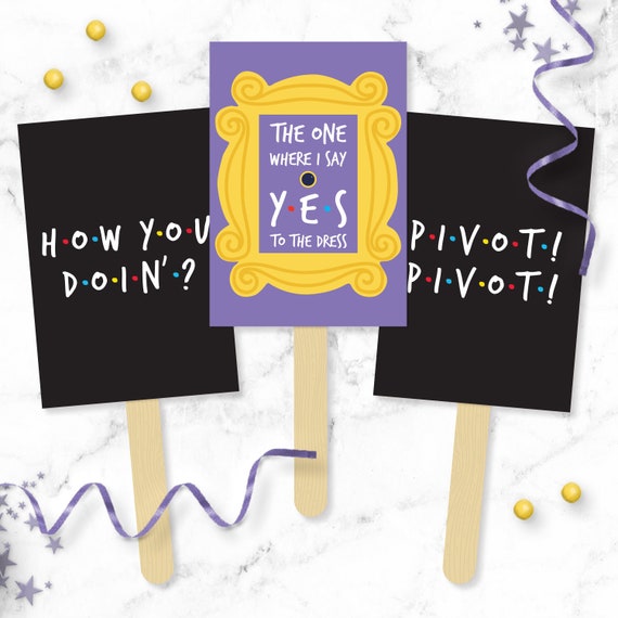 Say Yes To The Dress Signs Friends Tv Show Themed Printable I Said Yes Wedding Dress Shopping Paddles Instant Download Bridal Gown Game By Prim Popping Catch Friends Wedding Dress Shopping