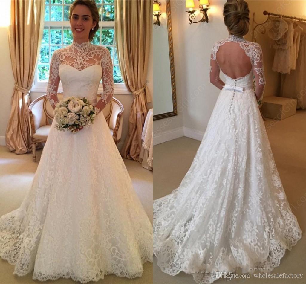 China Long Sleeves Bridal Gowns Lace Satin A Line Wedding Dress Full A Line Wedding Dress