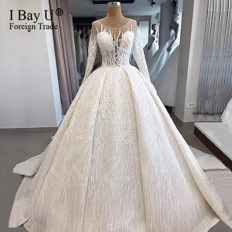 Muslim Bride Lace Ball Gown Wedding Dresses 2020 Long Sleeves Full Full Lace Ball Gown Wedding Dress