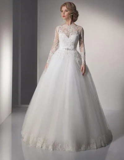 Custom Size Bride Ball Gown Dress White Tulle Full Skirt Sheer Full Skirt Wedding Dress