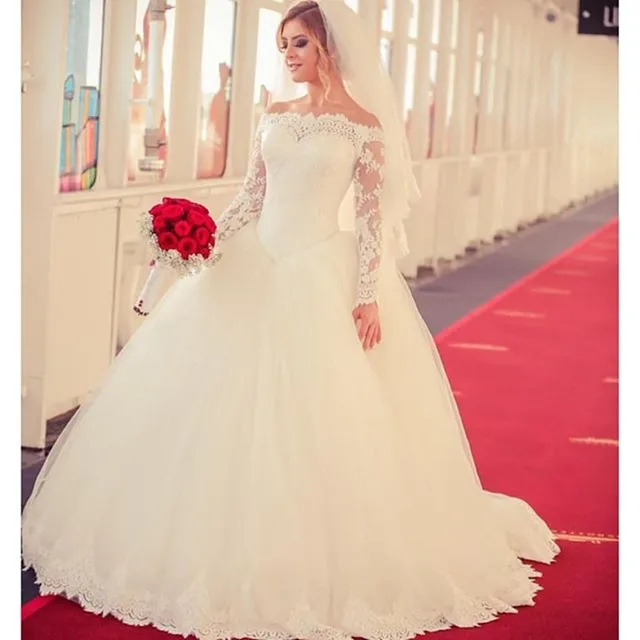 Romantic Lace Wedding Dresses With Long Sleeves Ball Lass Full Sleeve Ball Gown Wedding Dress