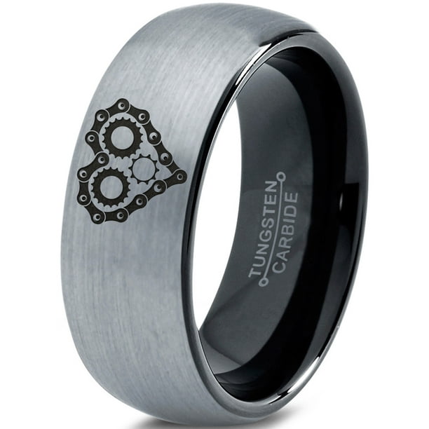 Zealot Jewelry Tungsten Bicycle Chain Gear Heart Band Ring 8mm Gear Mens Wedding Ring