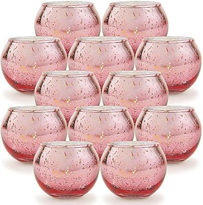 Shmilmh Round Rose Gold Votive Candle Holders Set Of 12 Mercury Glass Tealight Candle Holders For Wedding Centerpieces