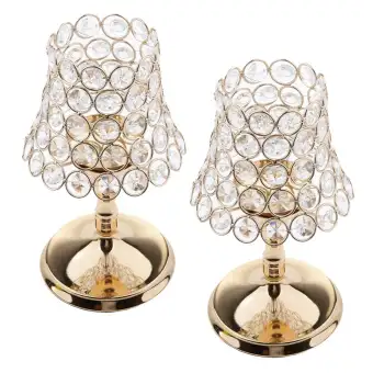 Shamjina 2 Pieces Gold Crystal Desk Lamp Candle Holders Wedding Glass Tealight Candle Holders For Wedding Centerpieces