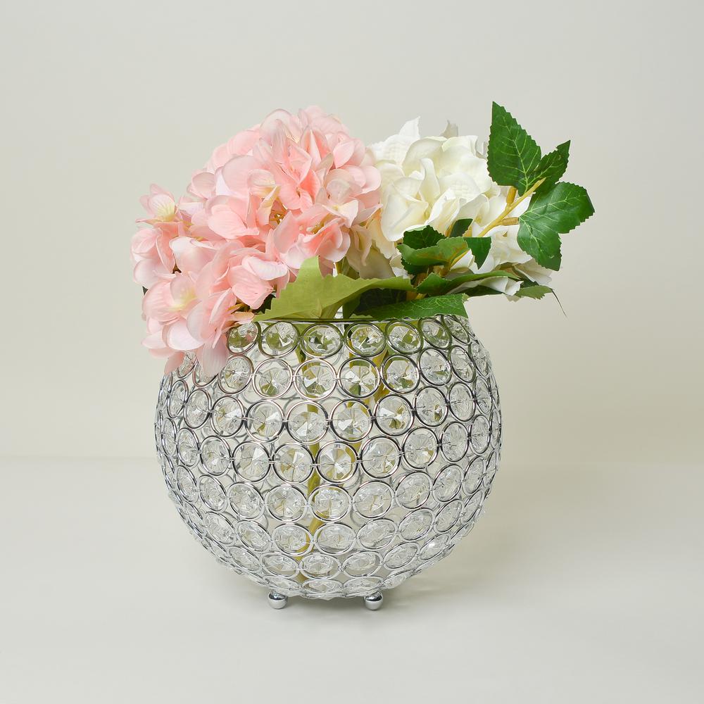 Elegant Designs 6 75 In Chrome Elipse Crystal Circular Bowl Glass Vase Wedding Centerpieces