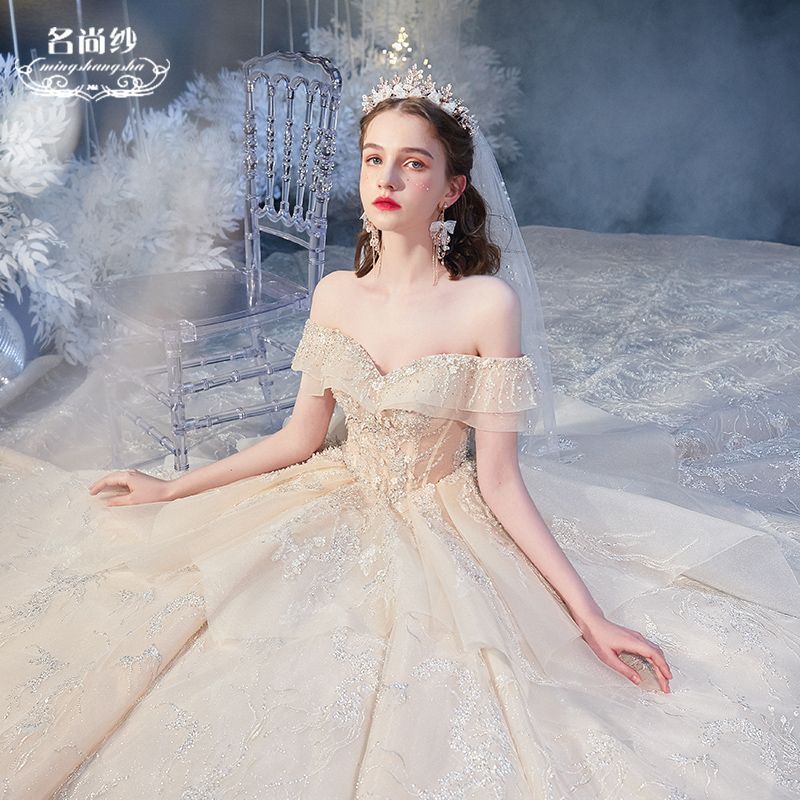 Custom Made Cream Blush Glittery Fabric Luxury Bling Cream Blush Glitter Wedding Dress Off The Shoulder