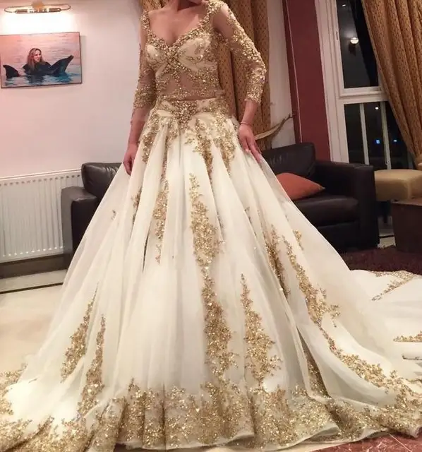 Arabic Middle East Muslim Wedding Dresses Lace Bridal Gowns With Gold Arabic Wedding Dress