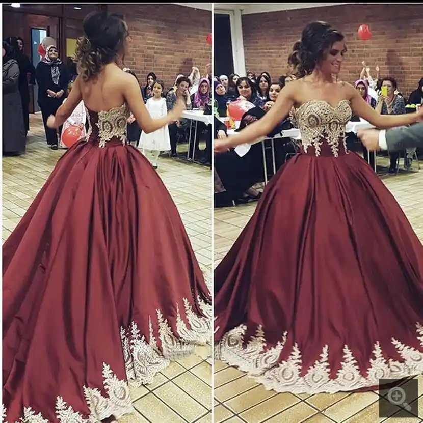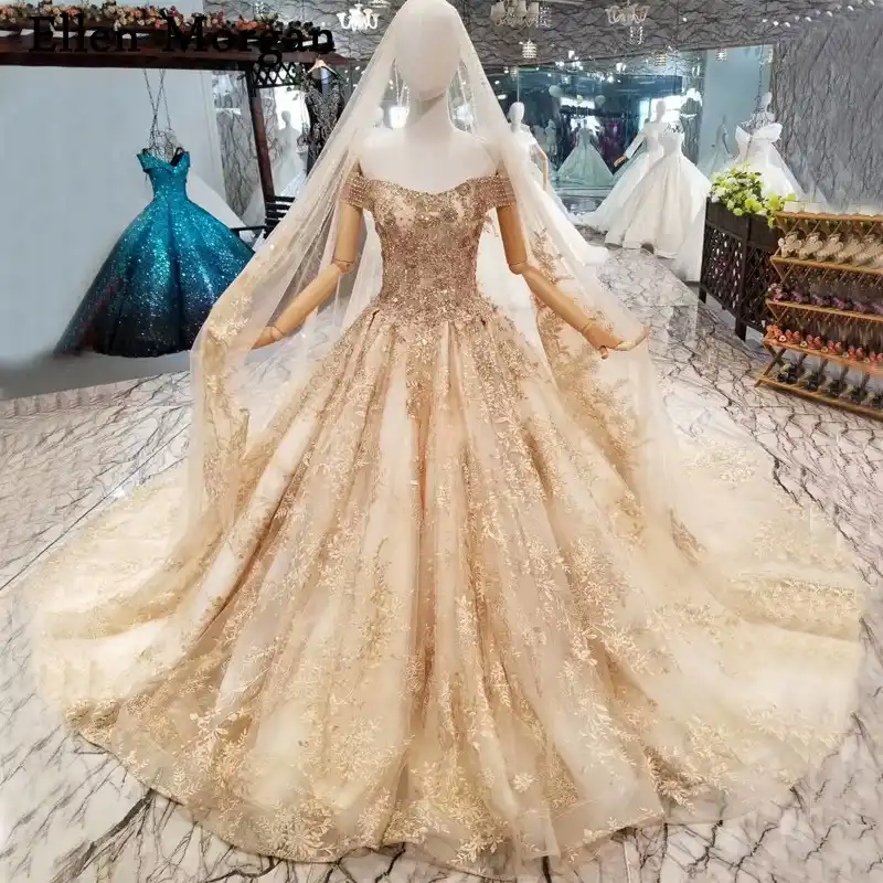 Ls11333 Muslim Wedding Dresses With Wedding Veil Golden Lace Gold Corset Wedding Dress