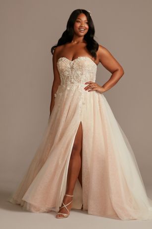 Classic Elegant Gold Plus Size Wedding Dresses 2018 A Line Gold Plus Size Wedding Dresses