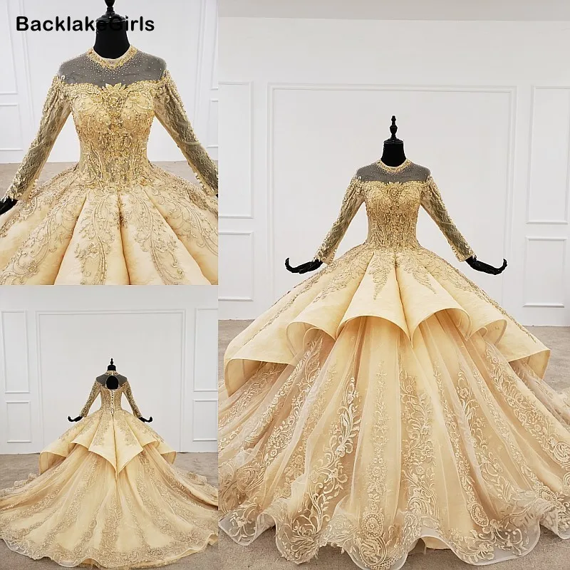 The 20 Wedding Dress Trends Of 2020 Best Wedding Dress Trends Gold Satin Ball Gown Wedding Dress With Sleeves