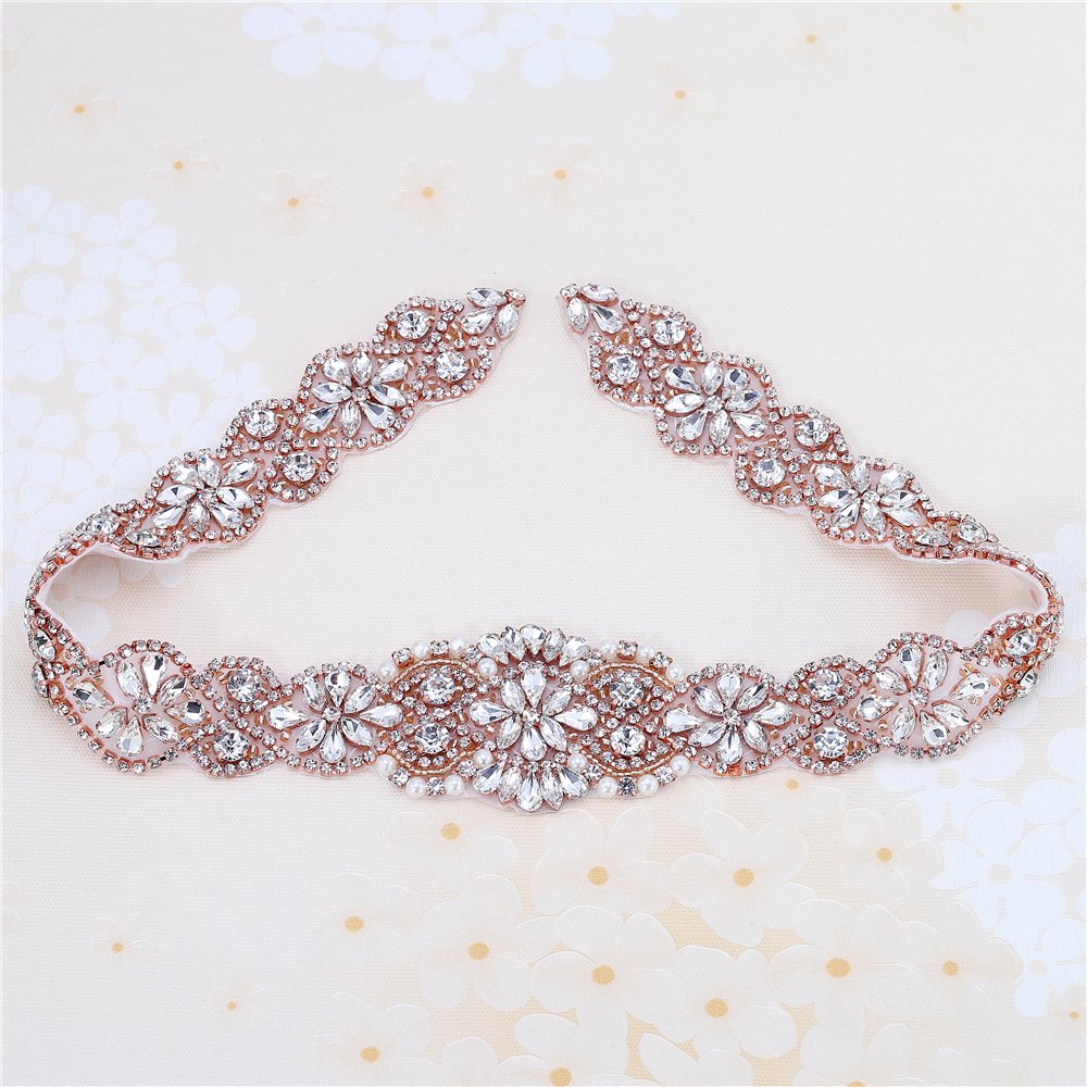 Rose Gold Wedding Bridal Sash Crystal Belt Rhinestone Applique Pearls Beaded Sewn Iron On For Formal Gown Dress Rose Gold Buy Online In Belize Xinfangxiu Products In Belize See Gold Wedding Dress Sash