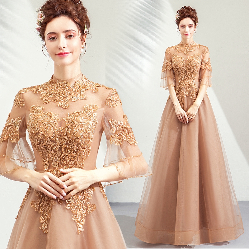 2019 Vintage Plus Size Lace Wedding Dress Bridal Gown Golden Golden Wedding Dress For Bride