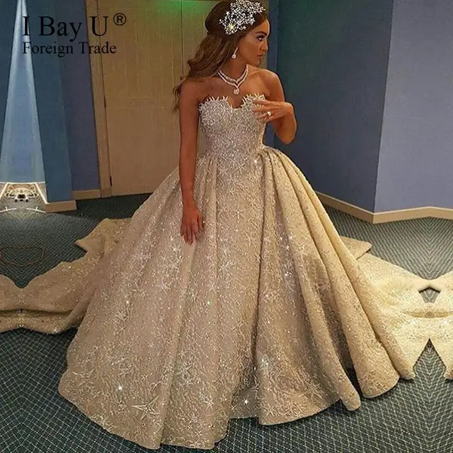 2019 Gorgeous Organza Princess Wedding Dresses Mermaid Beaded Gorgeous Wedding Dresses With Bling