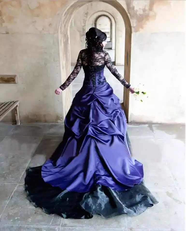 Popular Purple Black Wedding Gothic Dresses Fashion Gothic Black And Purple Wedding Dresses