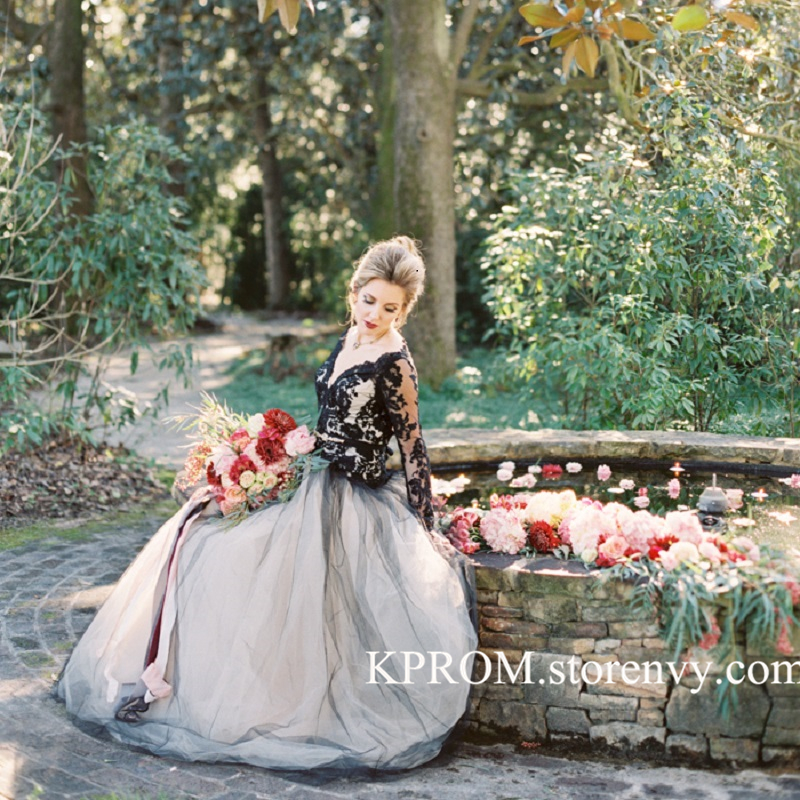 Gothic Wedding Dresses Black And White Sparkly Crystals Beaded Gothic Lace Gothic Black And White Wedding Dresses