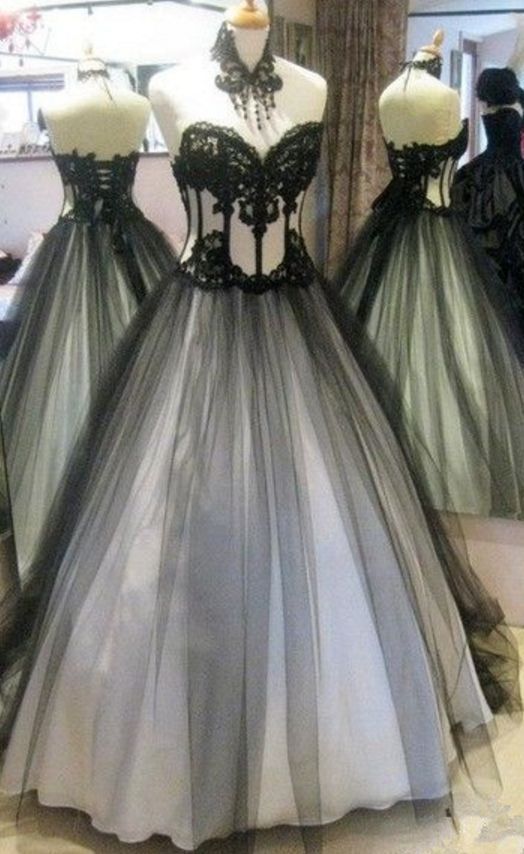 Black And White Wedding Dresses Modest Crystal Belt Sweetheart Gothic Lace Gothic Black And White Wedding Dresses