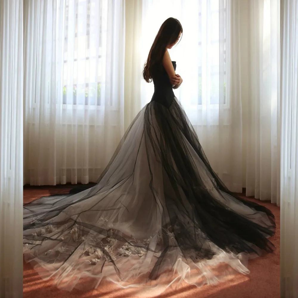 Portrait Of A Beautiful Red Haired Girl Wearing Gothic Inspired Gothic Victorian Era Wedding Dresses