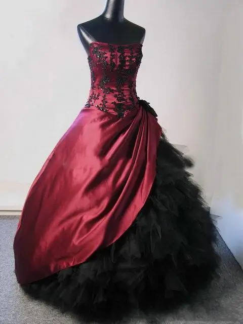 New Burgundy Black Wedding Dresses Victorian Gothic Strapless Gothic Victorian Wedding Dresses