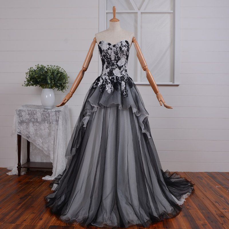 Discount Vintage Classic Gothic Wedding Dress Black And White Wedding Dresses Sweetheart Sleeveless Lace Appliques Corset Bridal Gowns With Beading Designer Wedding Dresses Cheap Lace A Line Wedding Dresses From Queenshoebox 156 96 Gothic Wedding Dresses White