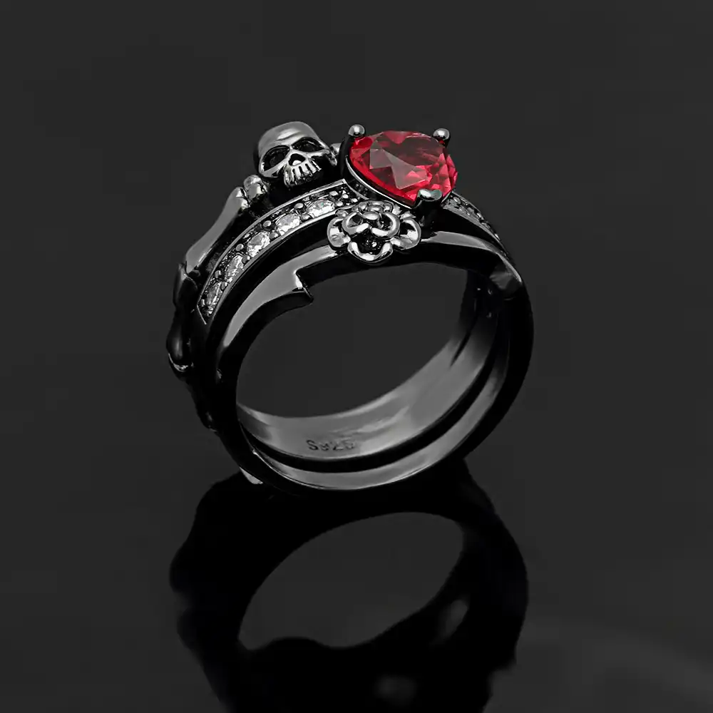 Gothic Skull Finger Black Gold Color Wedding Rings Sets For Women Gothic Wedding Rings