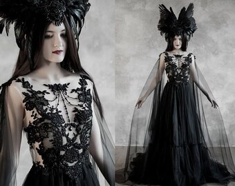 Sea Witch Goth Mermaid Wedding Dress Black Gothic Drag Queen Etsy Gothic Witch Wedding Dress