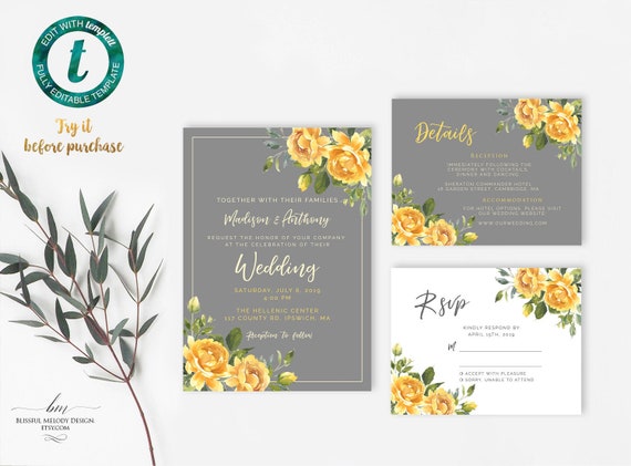 Bright And Playful Gray And Yellow Wedding Invitations For Mexico Gray And Yellow Wedding Invitations