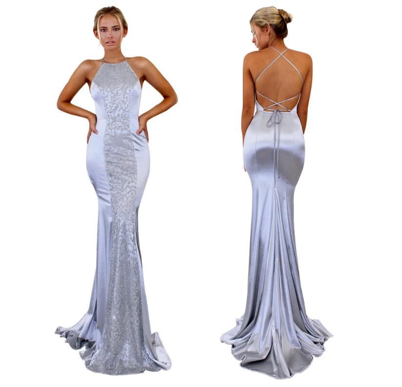 Elegant Sequined Gray Maxi Dress Women Sexy Elegant Party Evening Gray Maxi Dress For Wedding