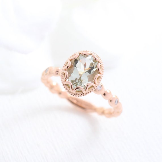 Green Amethyst Solitaire Engagement Ring In Rose Gold Floral Etsy Green Amethyst Wedding Ring