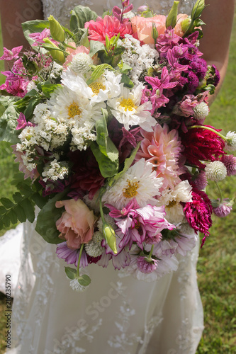 Bride Lace Wedding Dress Holding Vibrant Stock Photo Edit Now Green And Purple Wedding Dresses