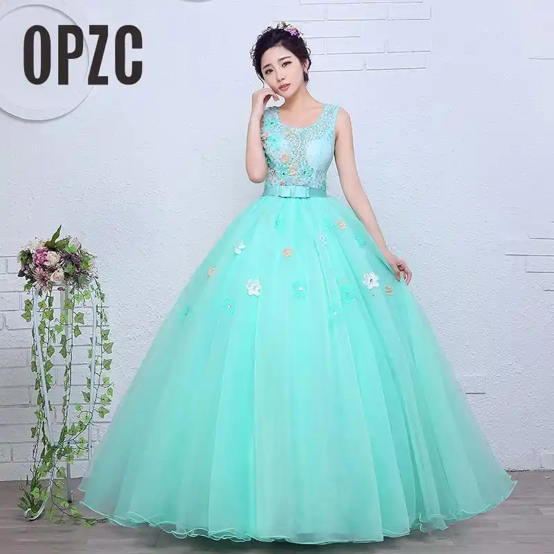 Lace With Flower Organza Colored Wedding Dress 2020 New Spring And Green Colored Wedding Dresses