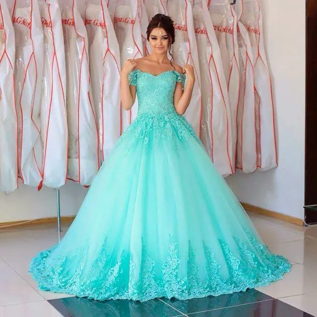 Ball Gown Green Color Wedding Dresses Sweetheart Off The Shoulder Green Colored Wedding Dresses